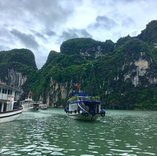 Et finalement, au départ de Hanoi (8h de route aller-retour), une visite à Halong Bay s'impose. Il s'agit d'une site classé au patrimoine mondial de l'UNESCO, qui compte environ 2000 îles karstiques dans une mer turquoise, dans le golfe du Tonkin. Pour notre part, nous avons dû prendre une excursion d'une journée (47.98$ par personne, dîner inclus) seulement comme une tempête tropicale a frappé Hanoi les jours précédents notre visite. Lors de excursion, nous avons eu la chance de faire du kayak dans la baie d'Halong (et d'y apercevoir des singes!) et de visiter une jolie grotte Thien Cung (toutefois moins impressionnante que celles de Phong Nha Ke Bang). Si vous en avez la chance, je vous recommanderais de prévoir au moins 2 jours dans la Baie d'Halong, car c'est magnifique et ça semble aussi chouette d'y admirer le lever/coucher de soleil.
